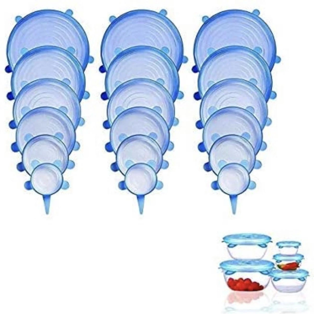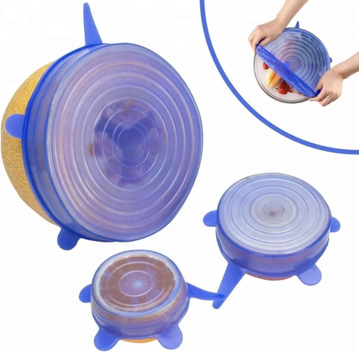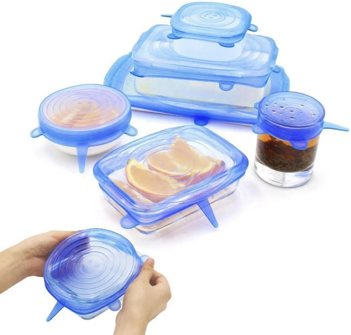 De siliconen deksels passen op alle soorten vormen Ovaal, rechthoek, rond, vierkant, etc) en zijn de perfecte sluiting voor vershoudbakjes. De siliconen zijn flexibel en kunt u uitrekken tot bijna 40% van de oorspronkelijke grootte.