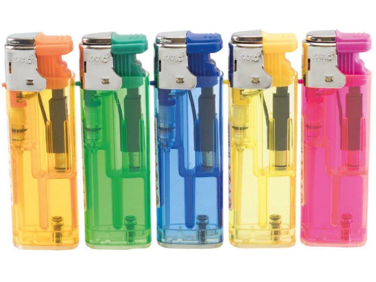 5 Stormaanstekers met een stevige windproof verstelbare stormvlam. Bijvullen mogelijk met aanstekergas.