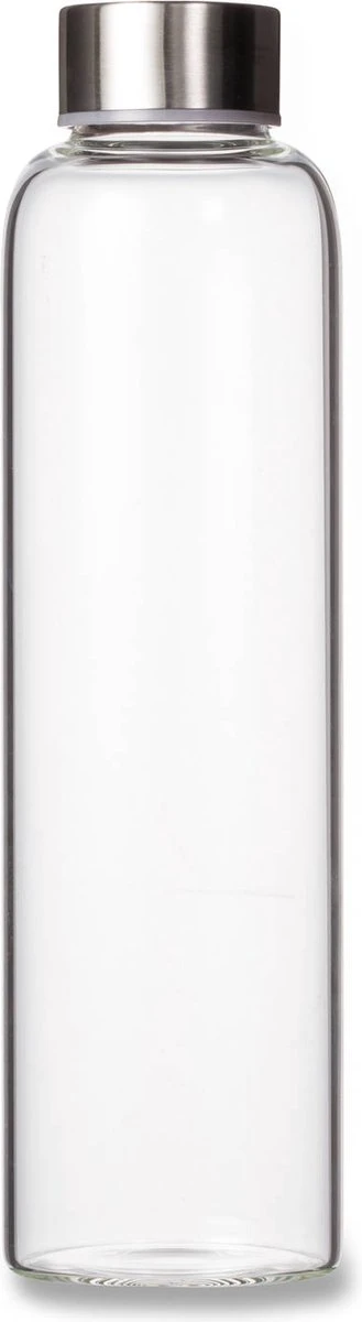 Deze mooie glazen waterfles is geschikt om mee onderweg te nemen. De fles heeft een inhoud van 600 ml.