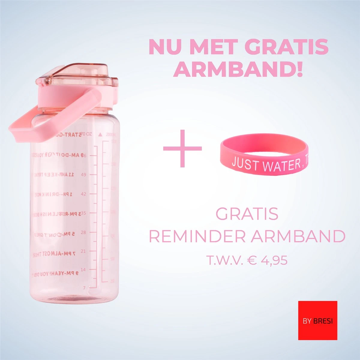 By Bresi – Waterfles 2 Liter Roze Transparant – Gratis Armband – Waterfles Met Rietje – Grote Waterfles – Sportbidon – Twee Liter Waterfles – Sportfles – Sportfles Fitness – Bottle 2 Liter- Drinkfles – Schenkfles – Drinkbus – Armband – Waterflessen