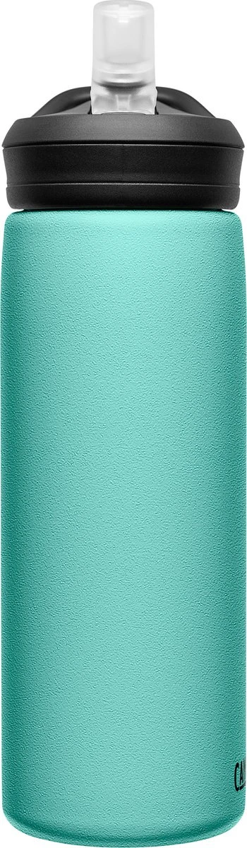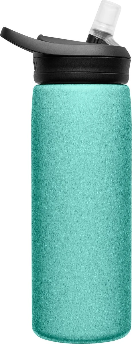 De CamelBak Eddy+ Vacuum Insulated heeft een bijtventiel dat zich opent door er zachtjes op te bijten. Dit siliconen bijtventiel is verbonden met een rietje waardoor de vloeistof omhoog komt als u zuigt. U hoeft de fles dus niet te kantelen tijdens het drinken. De drinktuit sluit geheel af wanneer u niet drinkt. Deze versie is dubbelwandig uitgevoerd waardoor de drank langer koel blijft en de buitenkant niet gaat condenseren in een tas.
