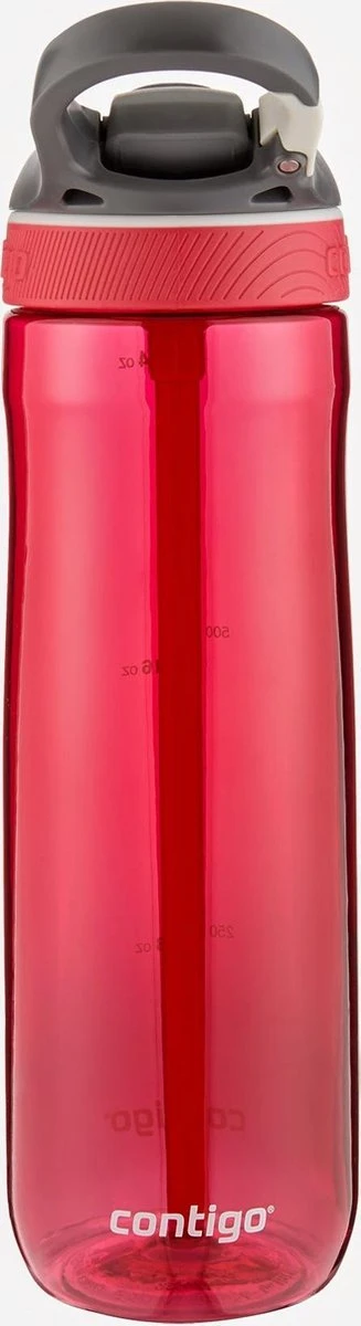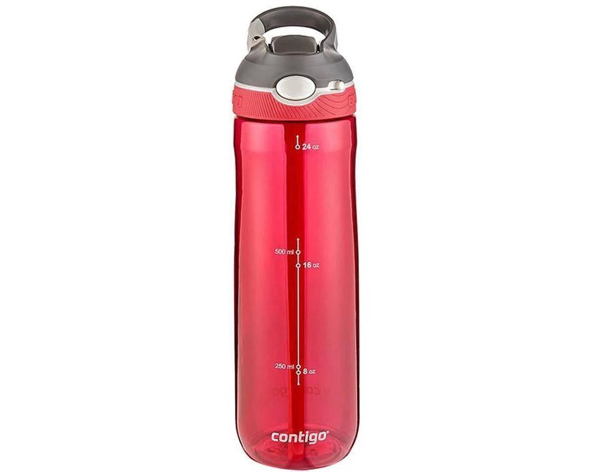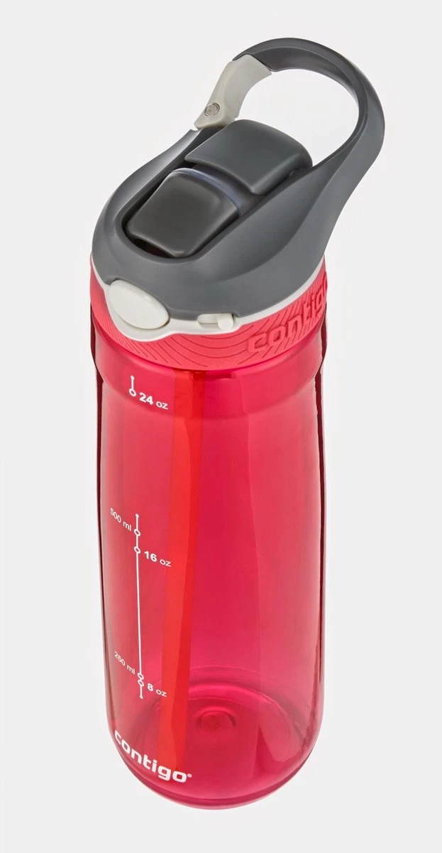 Contigo Ashland drinkfles. Deze 100% “spill proof” gepatenteerde Autospout drinkfles van Contigo heeft een inhoud van 720 ml en zorgt ervoor dat je ten aller tijden gehydrateerd blijft. Deze Contigo Ashland fles is geheel BPA vrij en kan bovenin de vaatwasser gereinigd worden. Hij kan met een handige clip aan je outfit of rugzak vastgeclipt worden. De Contigo Ashland heeft een intern rietje waardoor je in alle “standen” kunt drinken uit deze fles. De Ashland geeft je jarenlang drinkplezier!