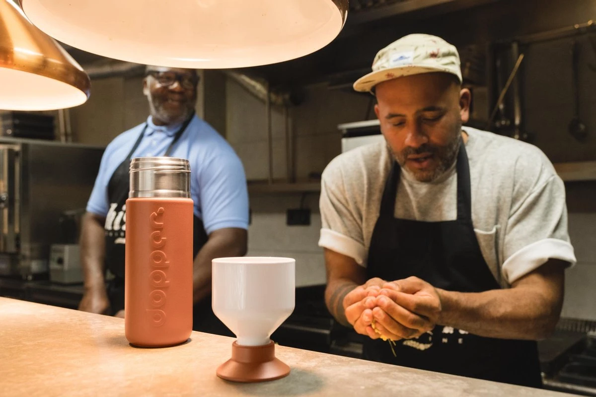 Wegwerpwaterflessen? Niet jouw ding. Herbruikbare waterflessen die ook nog eens plasticvervuiling tegengaan – daar gaat jouw (groene) hart sneller van kloppen. En dus heb jij je digitale weg naar onze website gevonden, om deze schoonheid van een Dopper Insulated eens van dichtbij te bekijken. We kunnen het je niet kwalijk nemen. Een herbruikbare fles die water koud houdt in de zomer (24 uur). Warm in de winter (9 uur). En waarmee jij de oceanen redt. Heel. Het. Jaar. Jouw eigen persoonlijke, duurzame klimaatbeheersing. Maar dan in flesvorm. Bonus: het fles-en-beker-in-één-ontwerp betekent dat hij makkelijk te vullen en schoon te maken is. Door jou, of door je vaatwasser (tot 65 graden). Hierbij verklaren wij het oceaan-reddingsseizoen geopend.