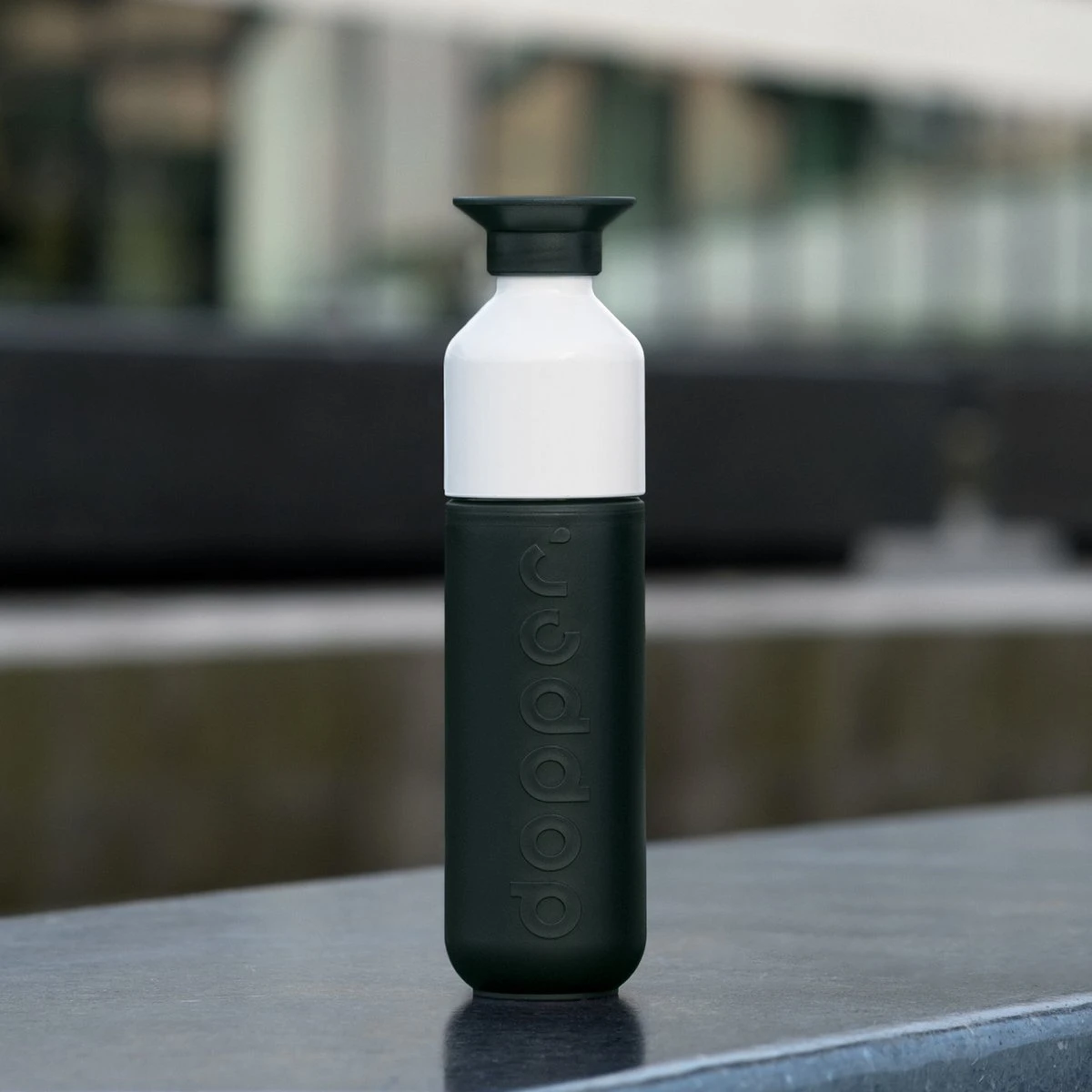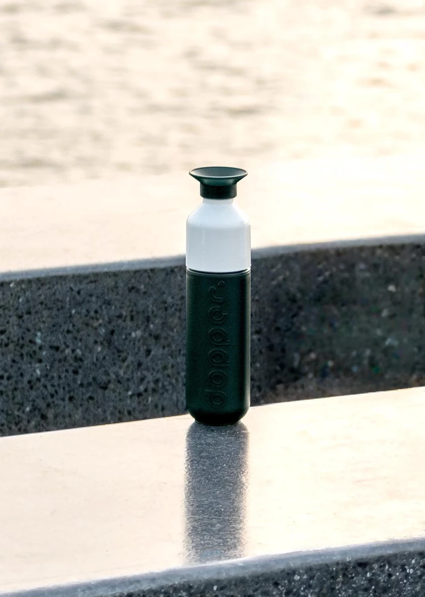 - Gemaakt van 70% plantaardig afval, 15% gerecycled plasticafval en met een negatieve CO₂-voetafdruk is de Dopper Original de meest duurzame herbruikbare waterfles ter