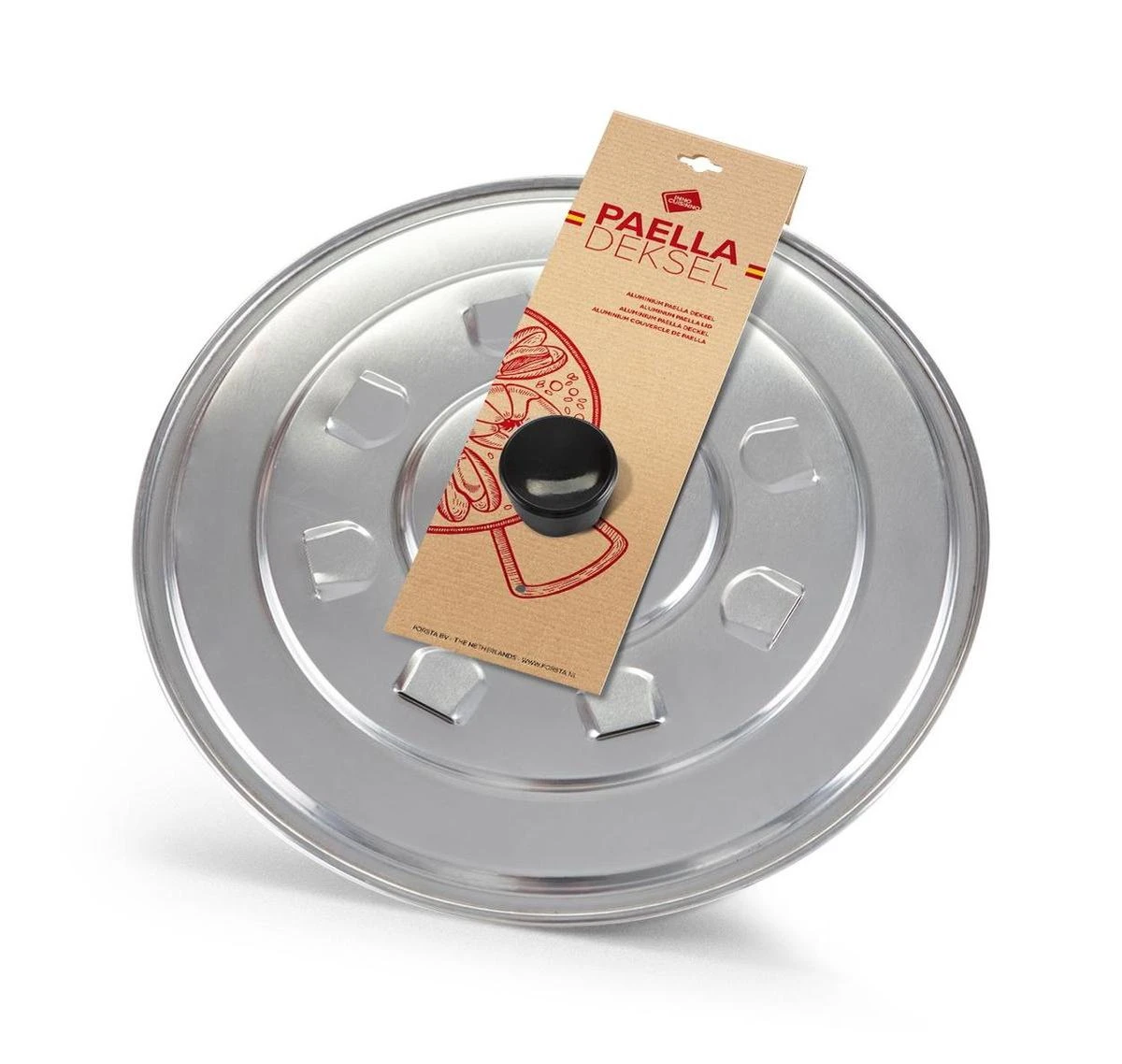 Dit grote deksel van Inno Cuisinno is handig bij het bereiden van een perfecte Spaanse paella. Je hebt het deksel nodig tijdens het garen van je paella, en je houdt het gerecht lekker warm op tafel. Het deksel is gemaakt van aluminium en voorzien van beluchtingsgaatjes. Natuurlijk kun je het deksel ook prima gebruiken op andere grote pannen. Na gebruik maak je het deksel schoon met wat warm water en afwasmiddel.