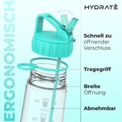 FLOOQ Motivatie Waterfles Zwart – 2 Liter Drinkfles – BPA Vrij – Waterfles Met Tijdsmarkering