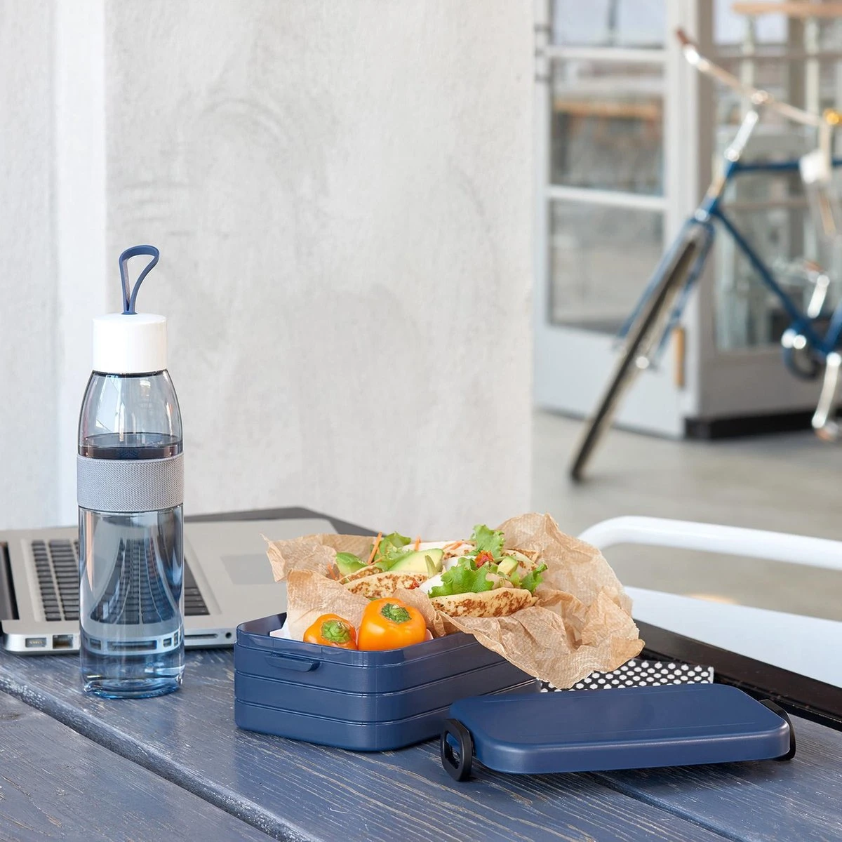 Waterfles Ellipse 500 ml in de kleur Nordic denim. Gezond, milieubewust en voordelig, dat is deze hippe, hervulbare waterfles van Mepal. Handig voor op het werk, tijdens het sporten of tijdens uw vrijetijdsbesteding. De dop kan heel eenvoudig worden opengedraaid en is voorzien van een lusje, waarmee de drinkfles gemakkelijk kan worden meegenomen. De Ellipse drinkfles voor volwassenen bevat géén BPA of weekmakers, is vaatwasserbestendig en 100% lekvrij! Berg de fles na het reinigen zonder dop op. De dop kan eenvoudig aan de waterfles bevestigd worden met behulp van het lusje, zodat je de dop niet kwijtraakt. Daar hebben we over nagedacht! Extra tip: Vul bij koolzuurhoudende dranken de drinkfles niet helemaal tot de rand.