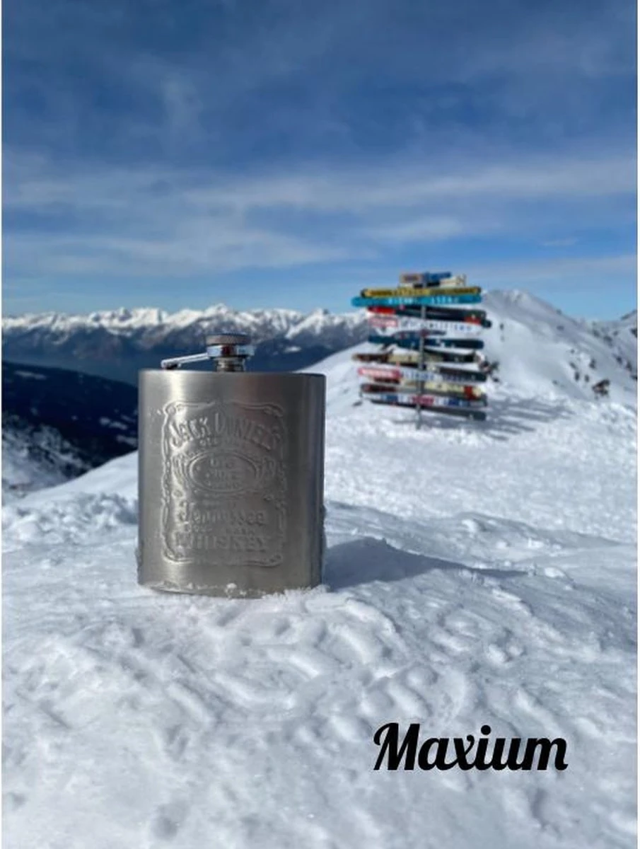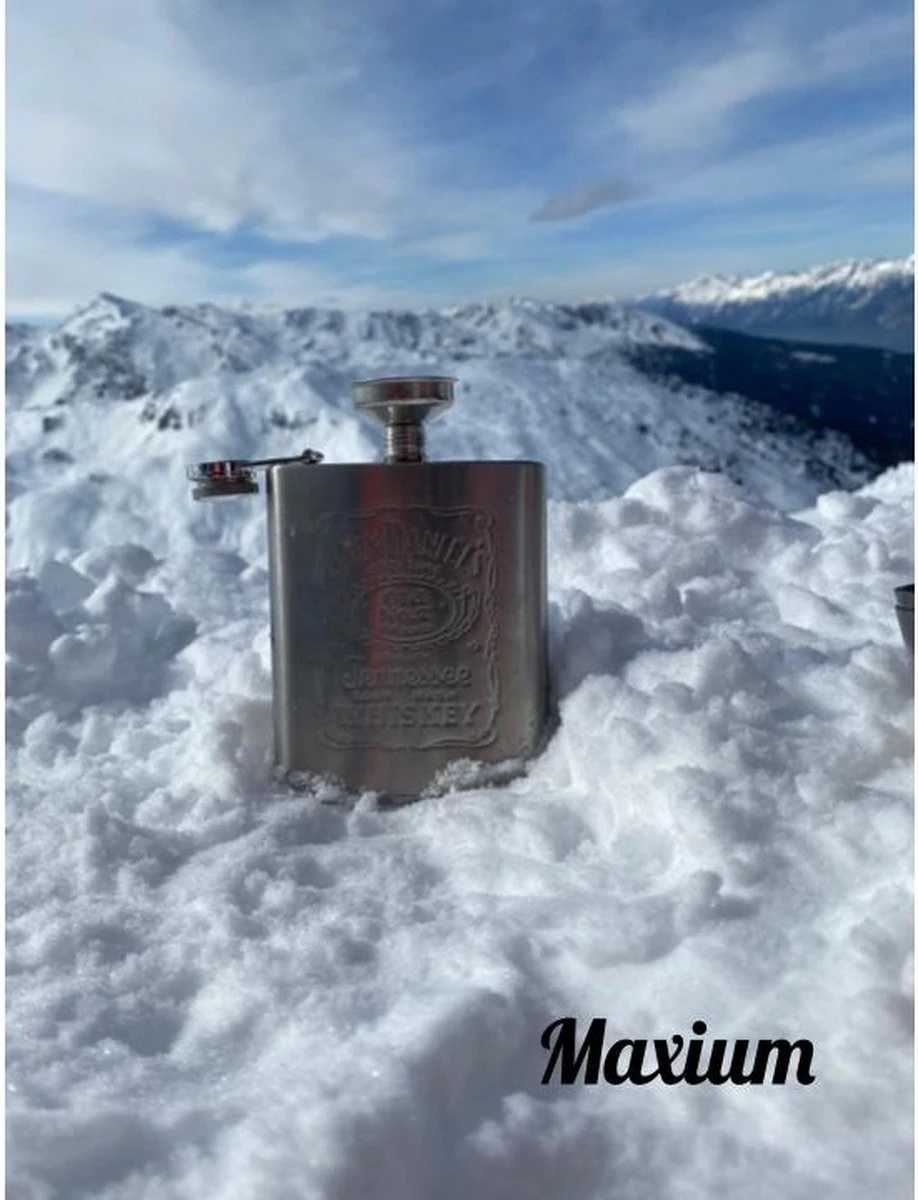 Maxium – De set bestaat uit één heupfles met ‘Jack Daniels’ erin gegraveerd. Verder bestaat de set uit een trechter en een twee (shot)bekertjes. De fles heeft een ronde afwerking die ervoor zorgt dat hij makkelijk op te borgen is. Verder is de heupfles voorzien van een veiligheidsluiting die ervoor zorgt dat u de draaidop niet kunt verliezen.