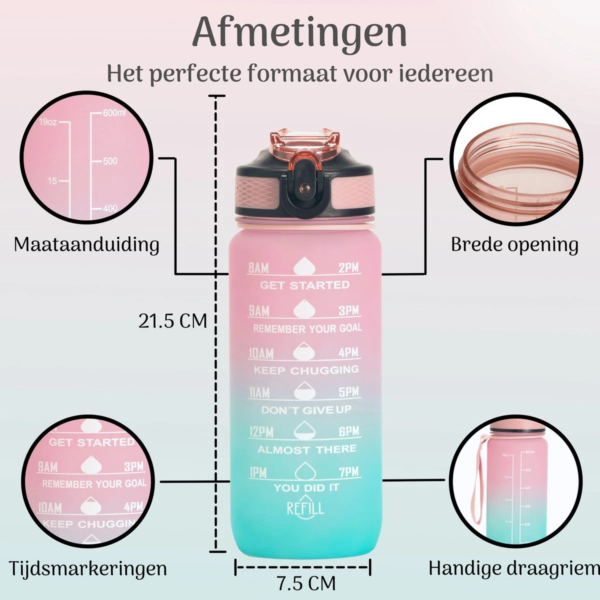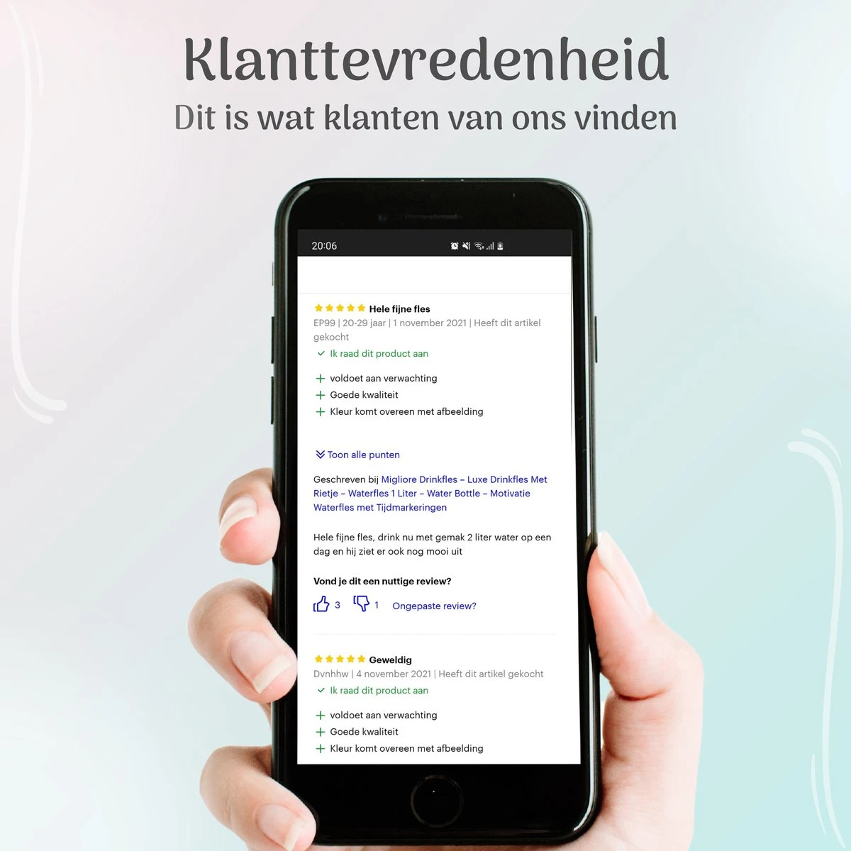 Houd jouw vochtinname en gezondheid in balans! Wacht niet langer en bestel vandaag nog jouw luxe drinkfles, nu besteld is de volgende dag in huis!