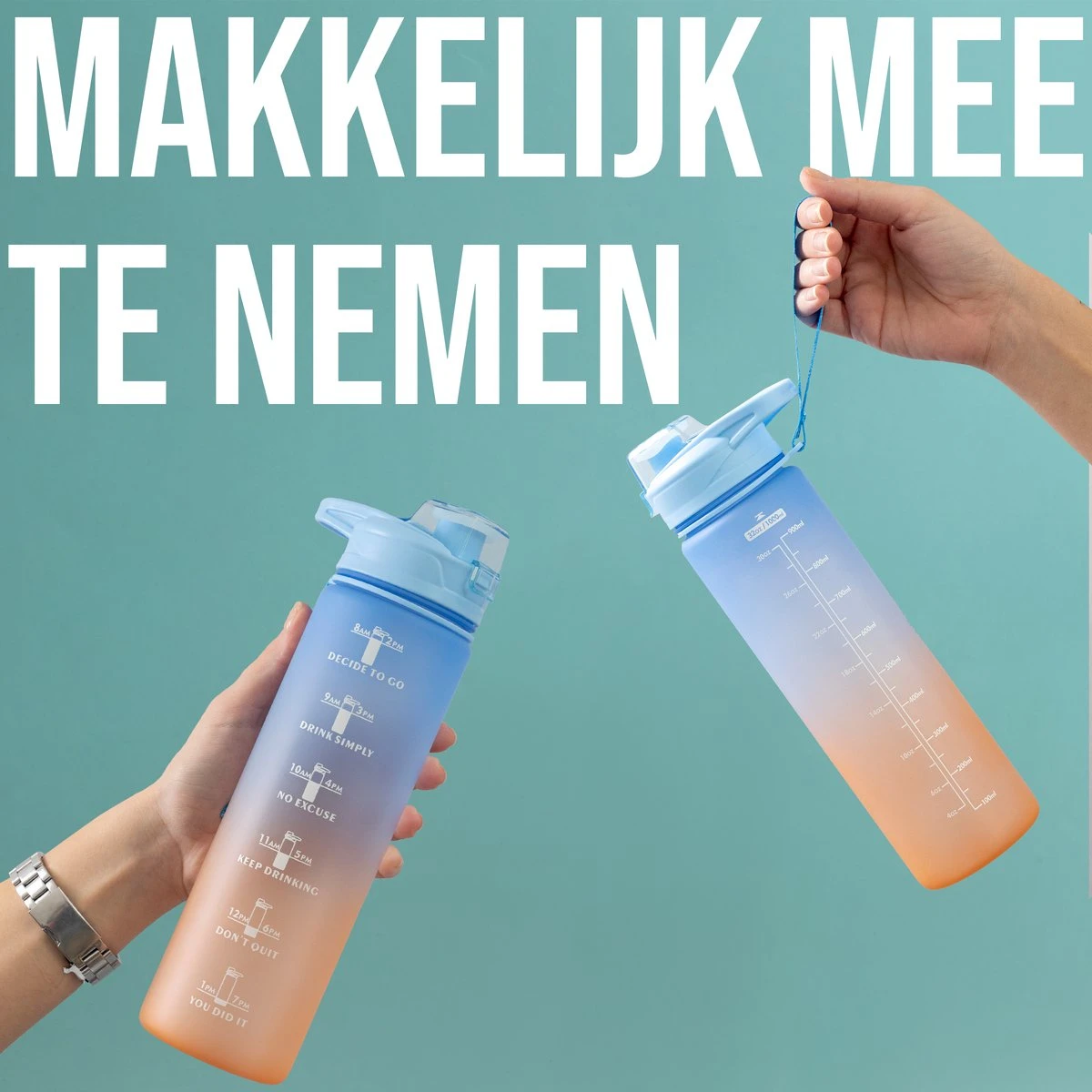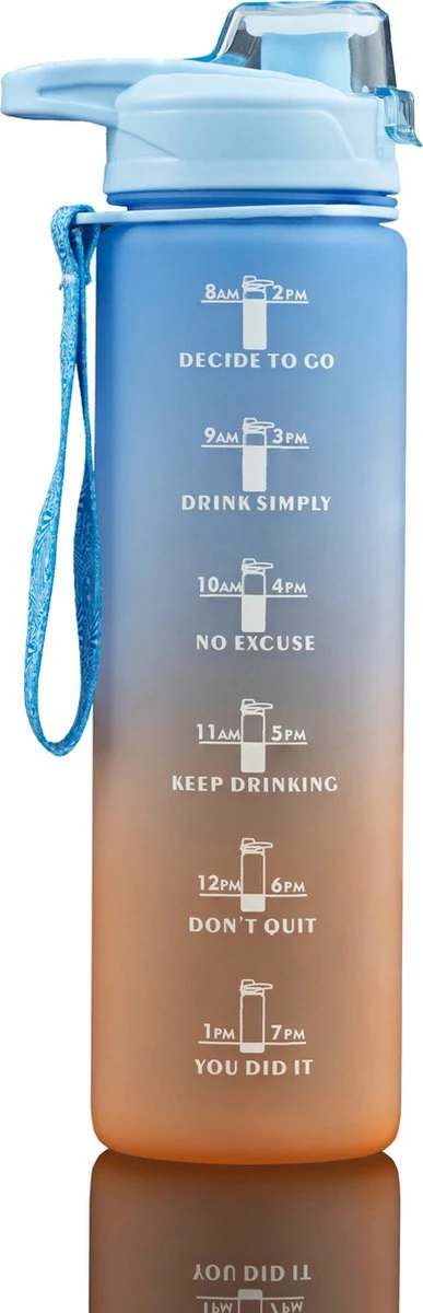 Op zoek naar een handige drinkfles die je helpt om genoeg te drinken? Deze waterfles van 1 liter is van alle gemakken voorzien. De drinkfles heeft een hip design, een handige drinktuit en is gemakkelijk mee te nemen. Door de motiverende teksten op de zijkant van de drinkfles kun je precies bijhouden of je wel genoeg drinkt.