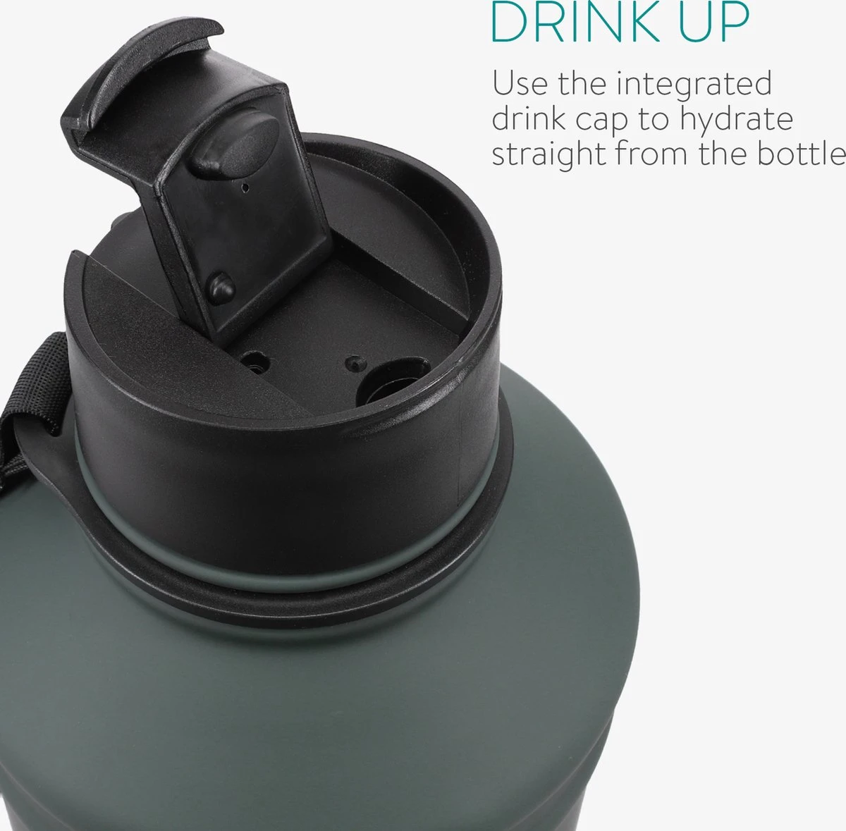 - DRINKDOP: Dankzij de handige drinkdop kun je direct uit de fles drinken. De dop is gemakkelijk te openen, maar tegelijkertijd lekvrij. Geen waterballet in je tas dus!
