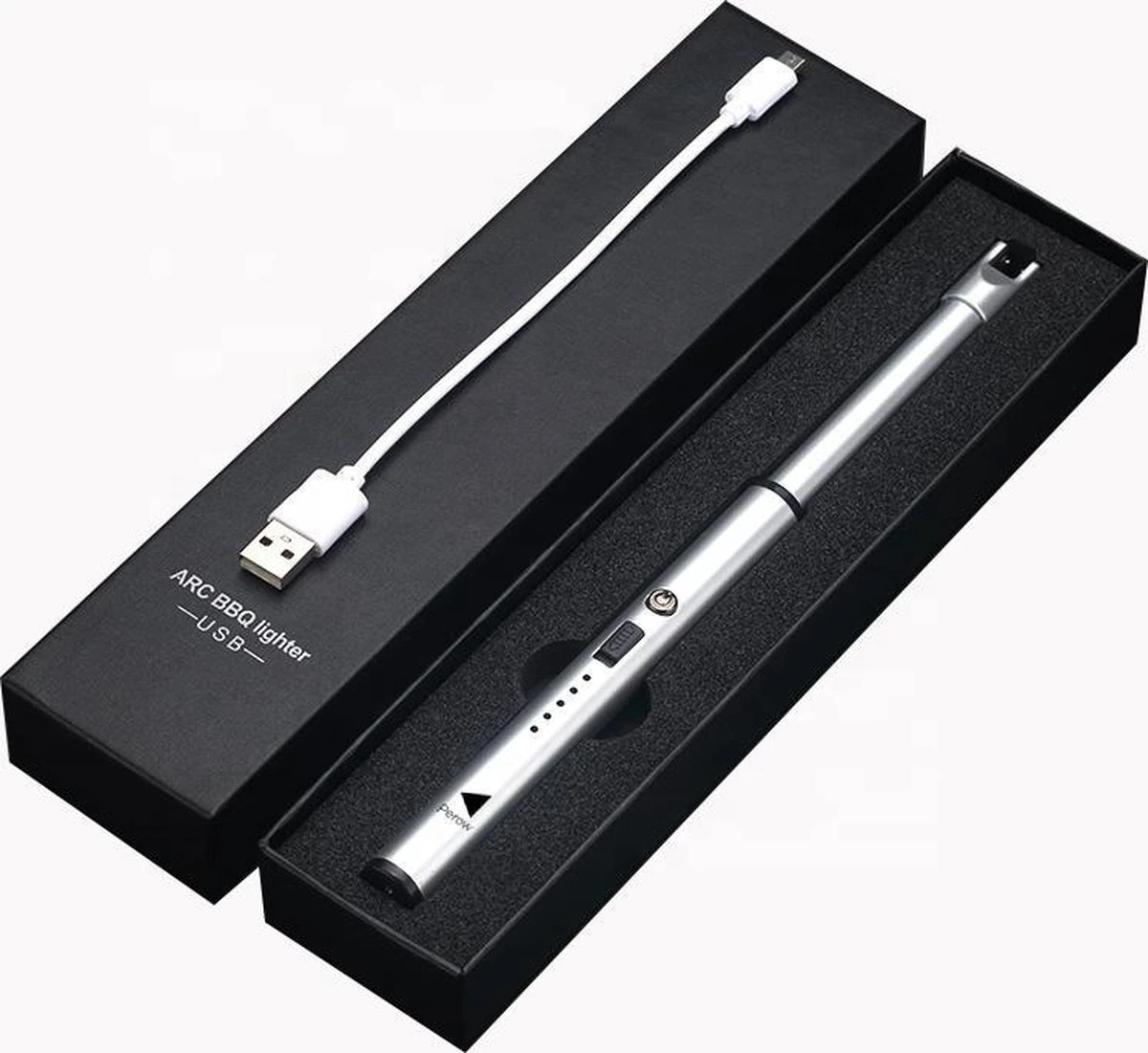 Oplaadbare Lange Dunne Elektrische Aansteker – Duurzame Plasma Aansteker – Inclusief Cadeauverpakking – BBQ – Kaarsen – Zilver
