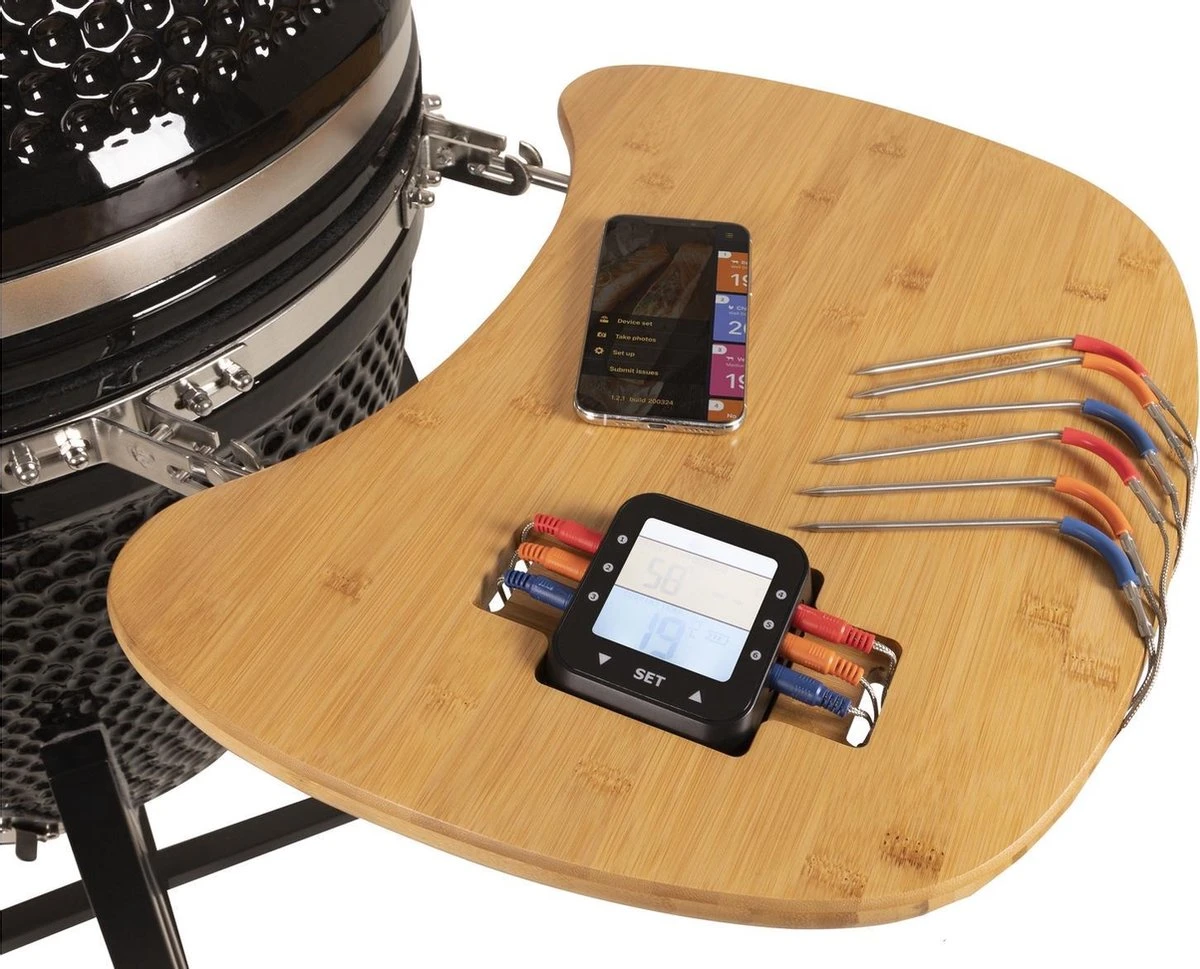 Patton – Kamado 21″ – Premium Black – Keramische Barbecue – Incl. Bluetooth Kerntemperatuurmeter – LED Verlichting – Large – Compleet – Zwart