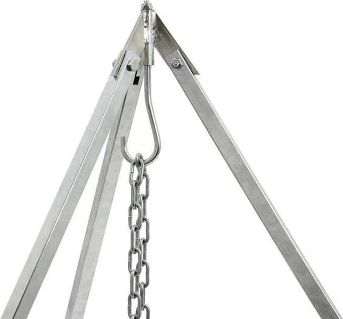 Een zeer stabiele 3-poot. Deze 3-poot is ideaal om de Dutch Oven aan te bevestigen en de pan vervolgens boven het vuur op te hangen. Beschikt over verstelbare poten, zodat deze ook op een ongelijke ondergrond stabiel kan worden afgesteld. De driepoot kan op verschillende hoogtes worden afgesteld. Ook geschikt om met andere pannen te koken boven een kampvuur.