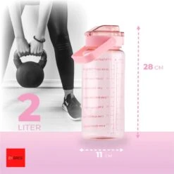 By Bresi – Waterfles 2 Liter Roze Transparant – Gratis Armband – Waterfles Met Rietje – Grote Waterfles – Sportbidon – Twee Liter Waterfles – Sportfles – Sportfles Fitness – Bottle 2 Liter- Drinkfles – Schenkfles – Drinkbus – Armband – Waterflessen