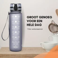 LaCardia Motivatie Waterfles Grijs – 1 Liter Drinkfles – Waterfles Met Tijdmarkering – Grijs