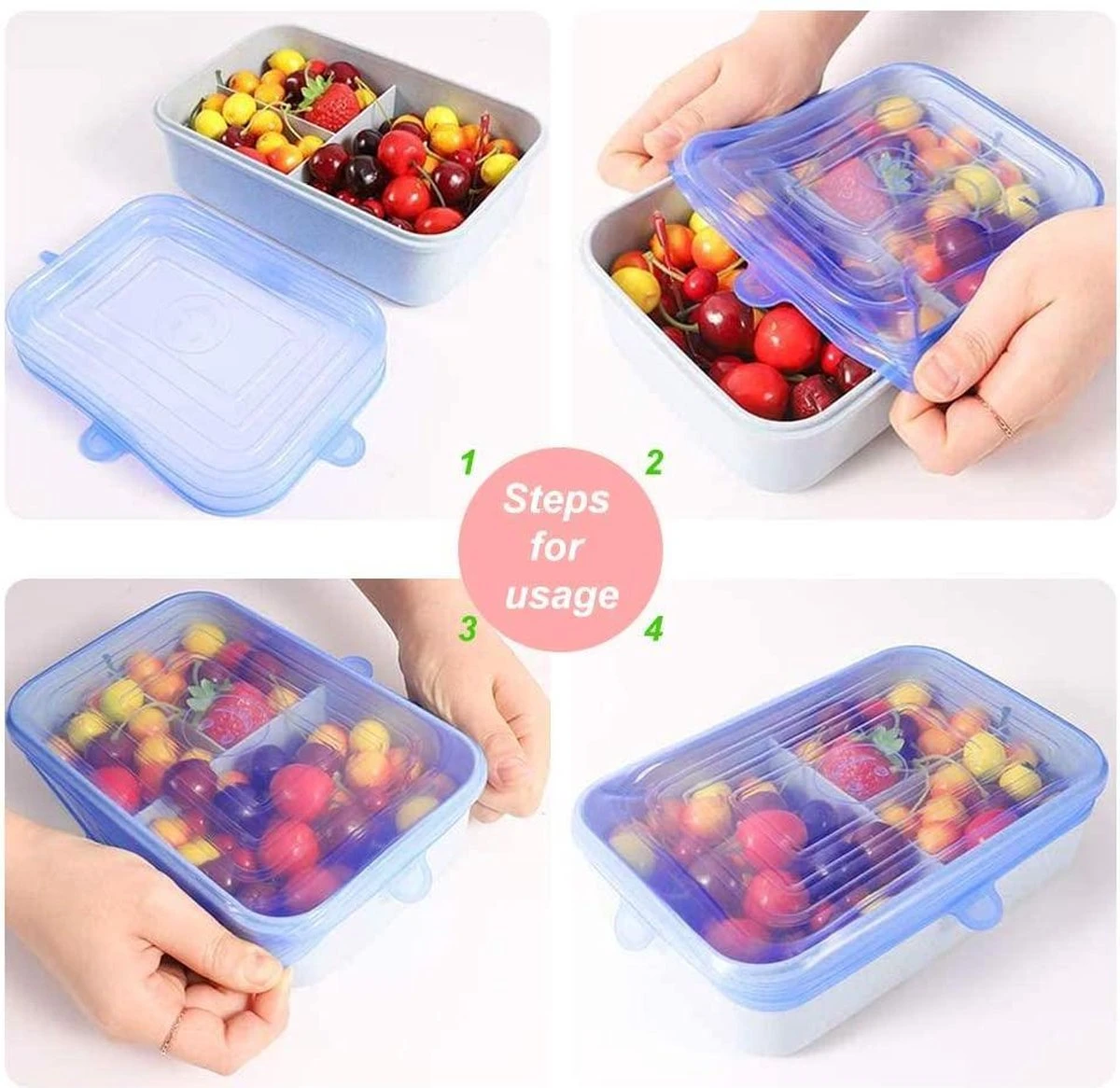 De ronde flexibele deksels zijn ideaal voor ronde objecten, zoals borden en potjes, maar het wordt een stuk lastiger wanneer je simpelweg bakjes hebt bijvoorbeeld. Daarom hebben wij nu ook extra set vierkante flexibele deksels toegevoegd aan deze reeks. Zo ben je van alle gemakken voorzien!
