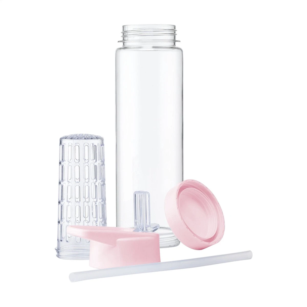 Waterfles met rietje en fruit filter | Roze